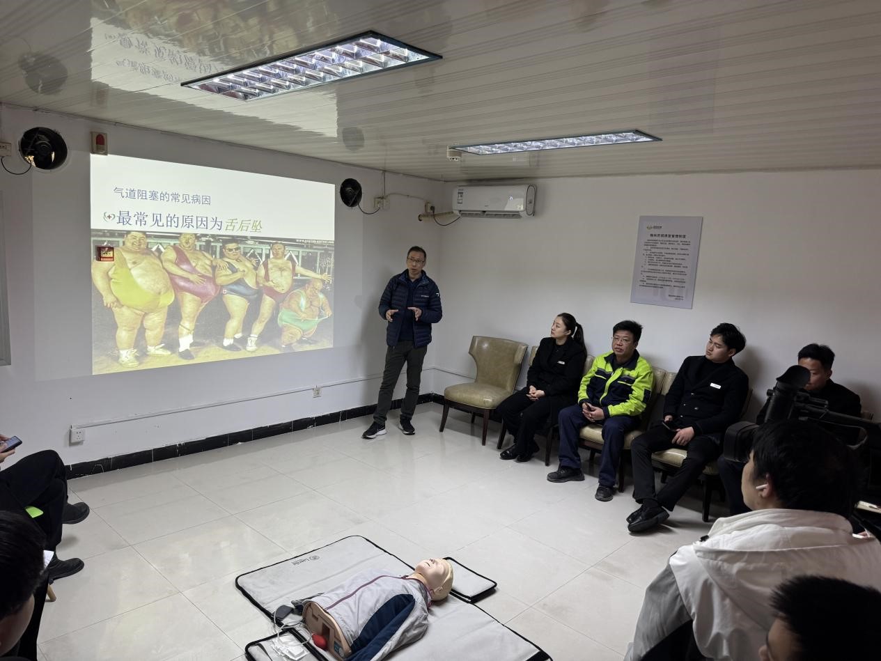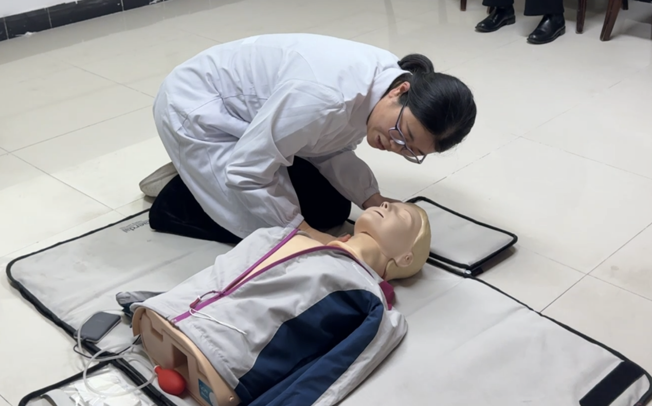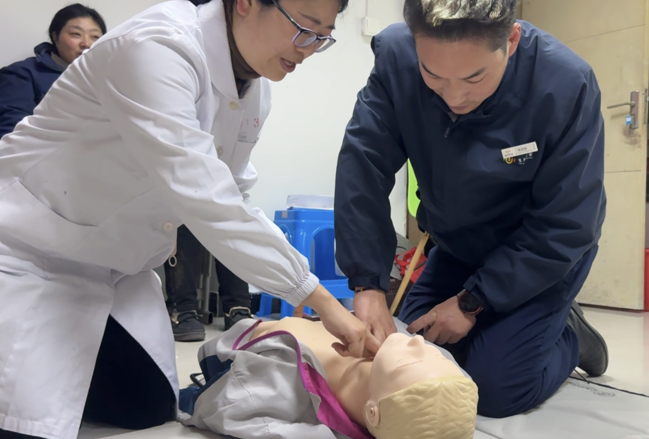 培訓(xùn)過程中,南通三院心內(nèi)科顧建國主任帶來了干貨滿滿的理論講解。盛和悅家的物業(yè)人員們?nèi)褙炞ⅲJ(rèn)真聆聽顧主任關(guān)于現(xiàn)場急救種類及基礎(chǔ)知識的細(xì)致闡述,逐漸明晰在面對各類突發(fā)狀況時(shí)應(yīng)如何迅速且準(zhǔn)確地做出判斷與反應(yīng)。緊接著,心內(nèi)科崔紅艷護(hù)士長進(jìn)行心肺復(fù)蘇(CPR)實(shí)操演示,其專業(yè)嫻熟的動(dòng)作令在場人員印象深刻。盛和悅家的物業(yè)人員們踴躍上手實(shí)踐,在崔護(hù)士長及顧主任的耐心指導(dǎo)下,逐漸掌握了正確的操作要領(lǐng),每一次按壓、每一次人工呼吸都力求標(biāo)準(zhǔn)規(guī)范,不斷糾正與完善自身技能。